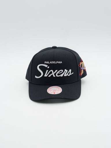 Gorra estilo snapback de Philadelphia 76ers de Mitchell & Ness Gorra estilo snapback con visera curva y estructura Negro Logotipo "Sixers" bor...