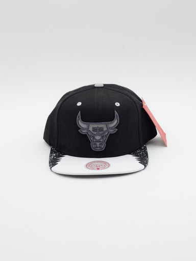 Gorra estilo snapback de los Chicago Bulls de Mitchell & Ness Gorra estilo snapback con visera plana y estrucutra Frontal negro de suede, vise...