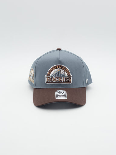 Gorra estilo snapback de Colorado Rockies de 47 Brand Audible Gorra estilo snapback de 5 paneles con estructura y visera curva Corona azul, viser...