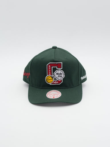 Gorra estilo snapback de Chicago Bulls de Mitchell & Ness Gorra estilo snapback con visera curva y sin estructura Color verde Logotipo "C" est...