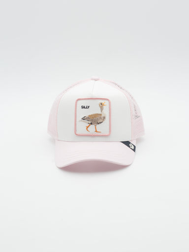 Trucker style cap with embroidered Goorin Bros patch Trucker style cap with curved visor White Embroidered "Sucker" patch on the fro...