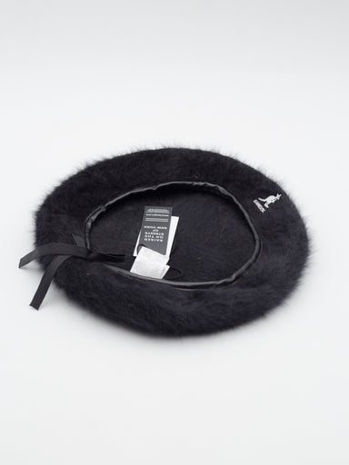 Kangol beret style beret. Angora-knit beret style beret by Kangol. Black Embroidered logo on the front 42% Angora, 40% Modacrylic, 1...