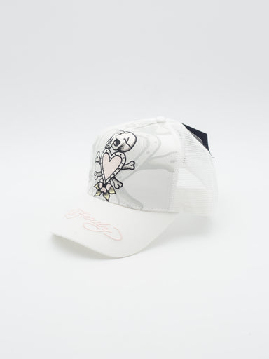 Gorra estilo trucker de la marca Ed Hardy Gorra estilo trucker de 5 paneles con estructura y visera curva. Blanco Calavera bordada en el frontal ...