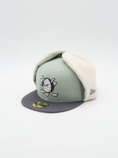 Gorra 59fifty con orejeras de Mighty Ducks de New Era Gorra fitted con orejeras y visera plana Corona y orejeras verde pálido, visera gris, under...