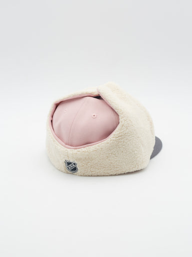 Gorra 59fifty con orejeras de Chicago Blackhawks de New Era Gorra fitted con orejeras y visera plana Corona y orejeras rosa pálido, visera gris y...