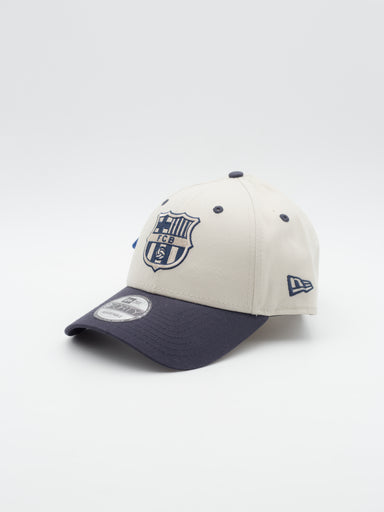 Gorra 9Forty del Fútbol Club Barcelona de New Era. Gorra estilo dad hat con estructura y visera curva Corona beige y visera azul marino navy Escu...