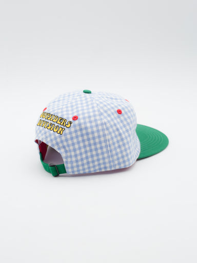 Gorra estilo six panel de OUTSIDERS DIVISION Gorra estilo six panel sin estructura y con visera plana Corona de tejido vichy azul y visera verde...