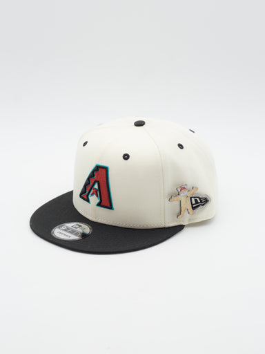 Gorra estilo snapback de Arizona Diamondbacks de New Era Gorra estilo snapback con visera plana Corona blanco roto, visera negra y undervisor gri...