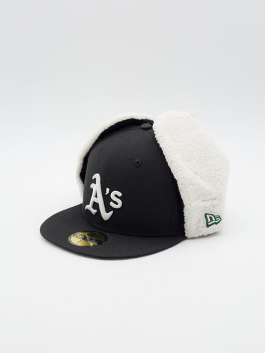 Gorra 59fifty con orejeras de Oakland Athletic's de New Era Gorra fitted con orejeras y visera plana Negra con orejeras blancas Logotipo de los O...