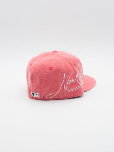 Gorra 59Fifty Essential de los New York Yankees Gorra fitted con visera plana Rojo lavado, rosa desgastado. Undervisor gris Logotipo "NY" de los ...