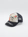 Estampado de calavera y rosa tradicional en el frontal y la firma del artista tatuador estampada en la visera y bordada en el lateral