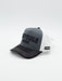 - Frontal gris, visera de ante negro por arriba y estampada por debajo y rejilla blanca.