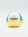 - Frontal blanco, visera amarilla y rejilla azul turquesa