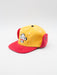 - Unstructured six-panel style cap with a flat brim and ear flaps