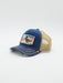 - Front and visor in blue denim and beige mesh